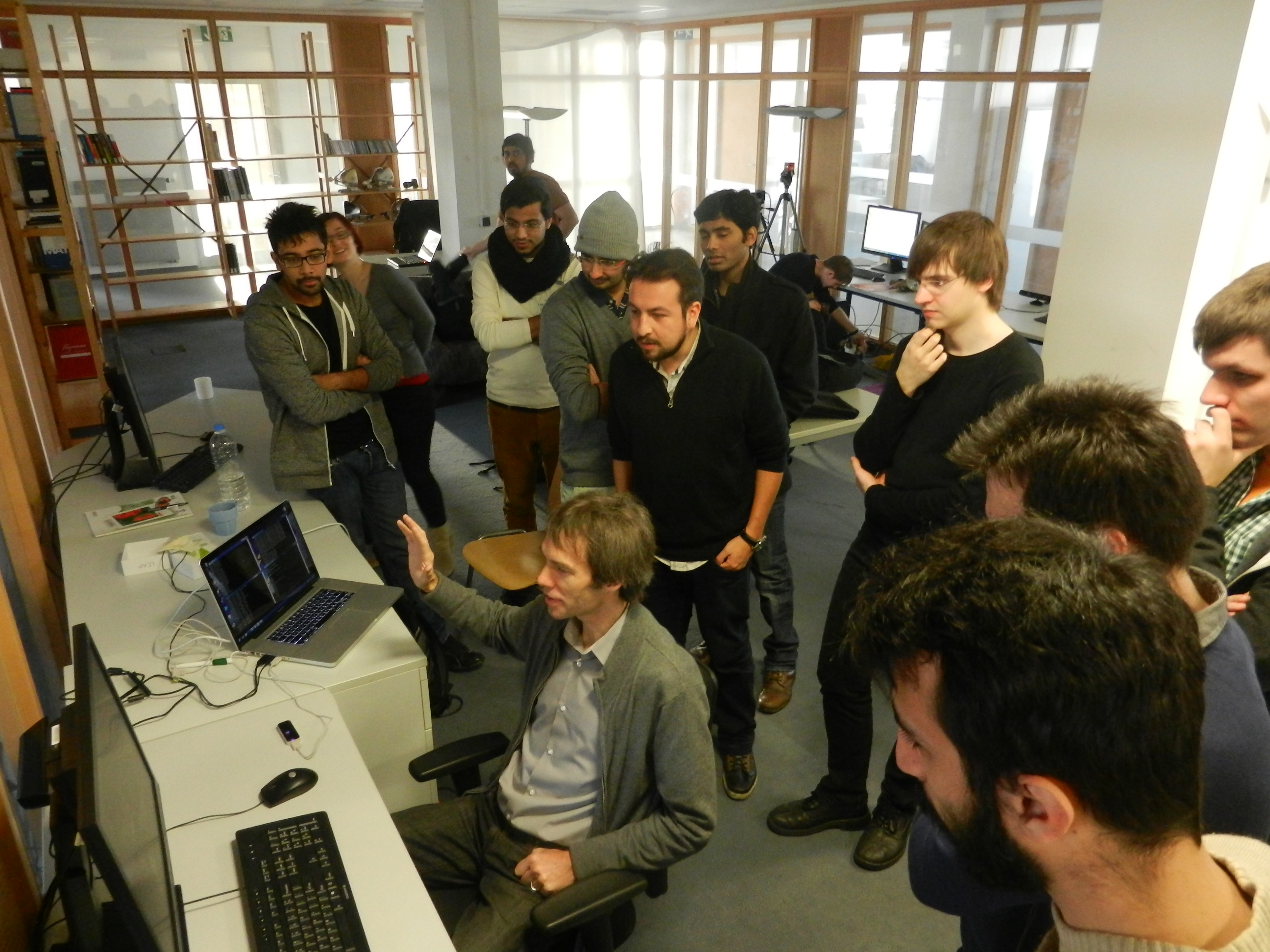 On April 11, 2014, we had a presentation and a final demo at the Hochschule für Künste Bremen. Below you can find some pictures of the presentation and a video with a teaser and a demonstration of our project.
