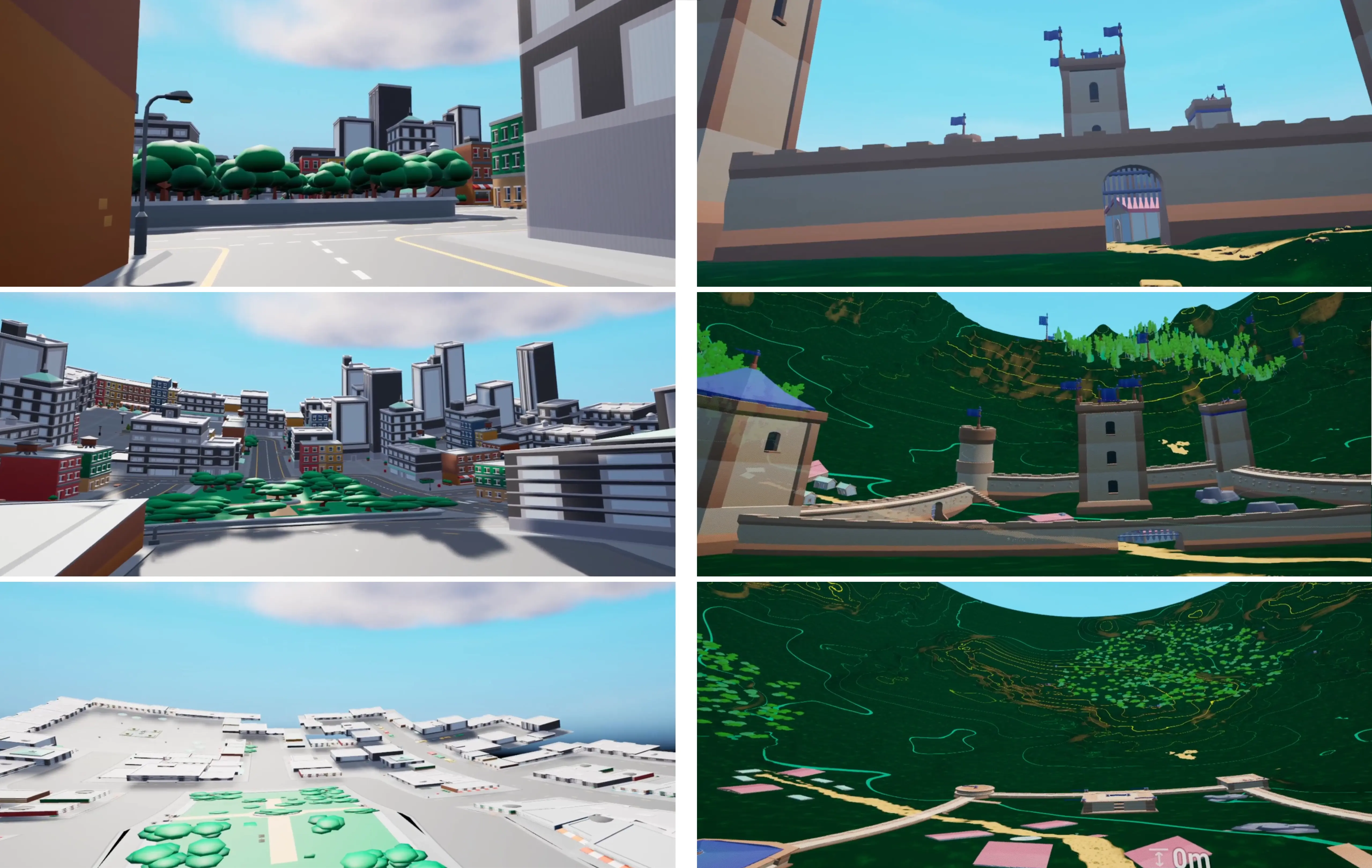 To support a controlled evaluation, a fully interactive Mini-Map teleportation system was also implemented. It includes continuous zooming, panning, and a directional player marker to improve orientation. The study was carried out in two custom-built environments: a dense City scene for testing short-range navigation in cluttered spaces, and a kilometer-scale Castle landscape for assessing performance across long distances. Both environments were instrumented with predefined task locations and data-logging systems integrated into the Unreal Engine framework.